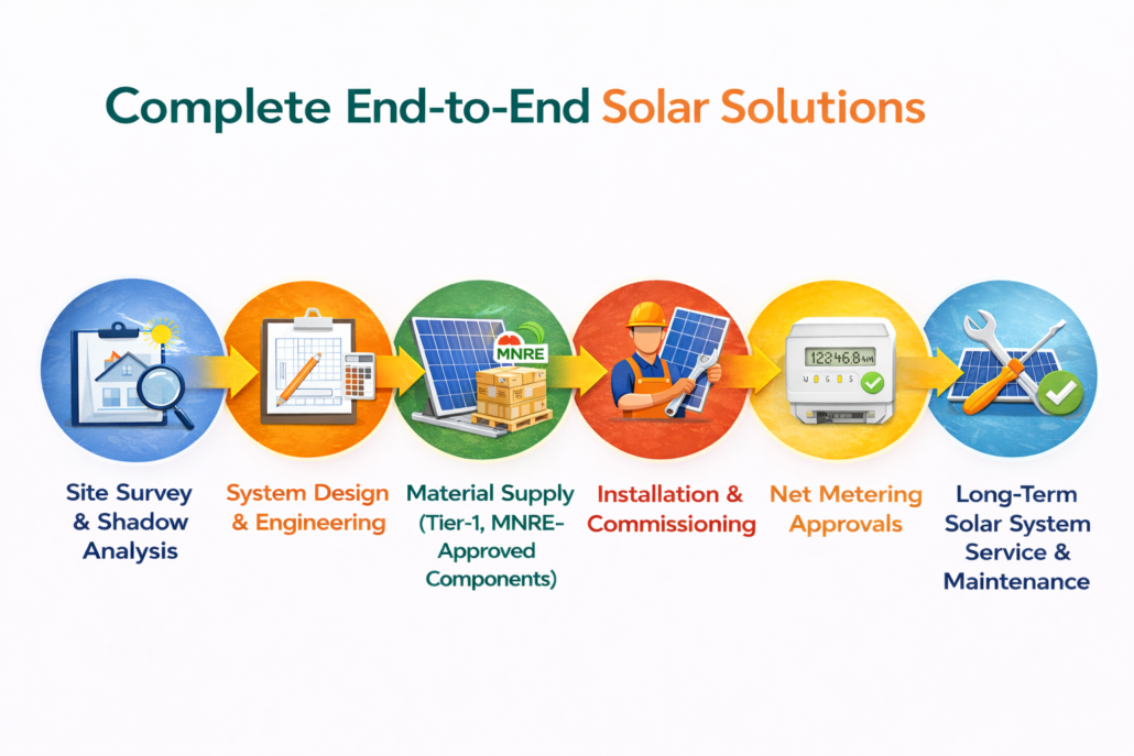 We provide end-to-end rooftop solar solutions, handling everything from: